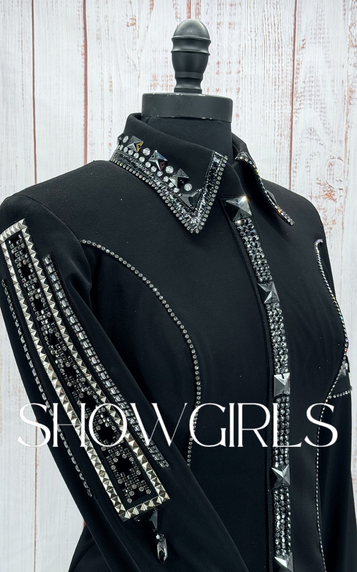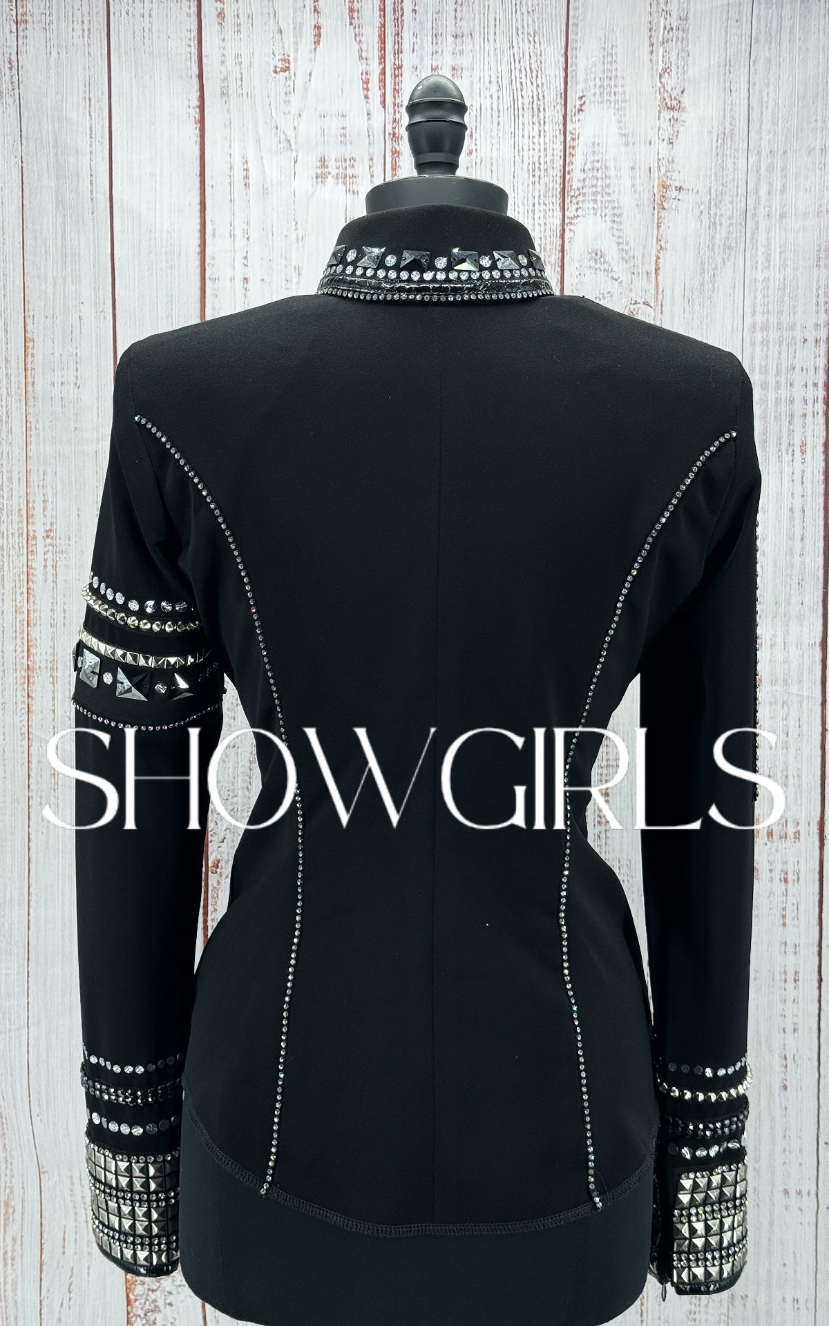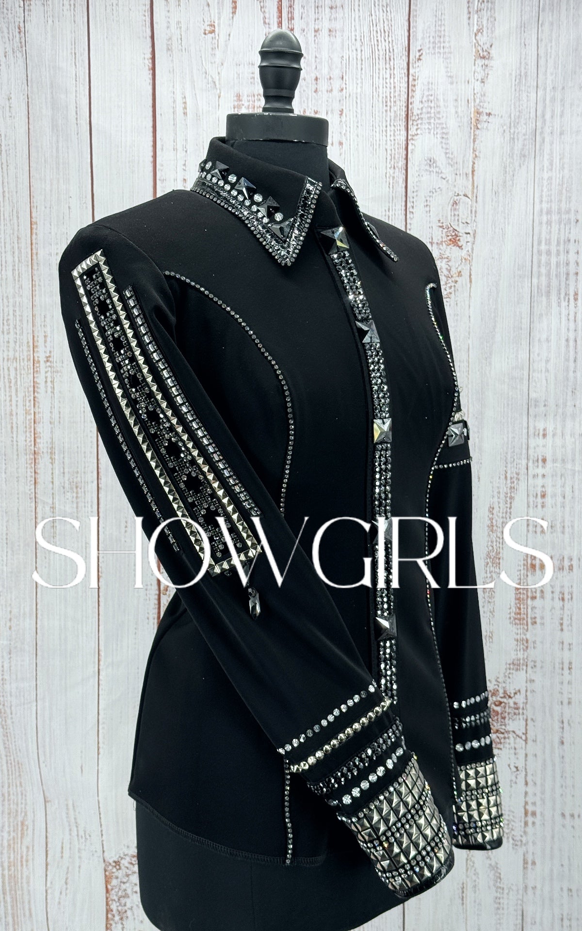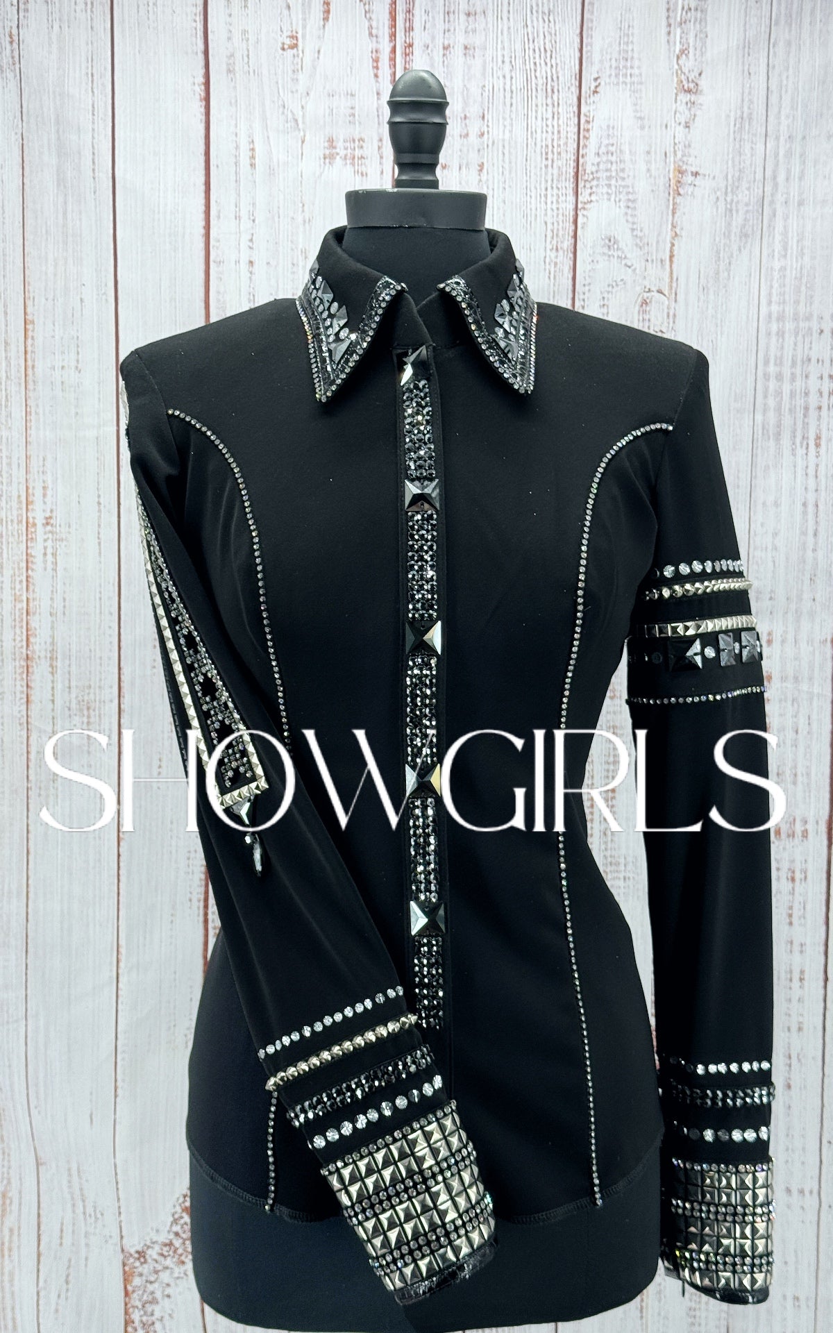 The BRAND NEW front zip shirt has a large amount of stretch and measures approximately: 37"-38" Bust, 31"-32" Waist, 16.5" Shoulder to Shoulder, 26" Sleeve Length and 24.5" Back Length.